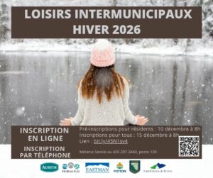 Le comité intermunicipal des loisirs mis en place par les municipalités d’Austin, Bolton-Est, Potton, Eastman, Saint-Étienne-de-Bolton et Stukely-Sud offre des activités à raison de trois sessions par année.