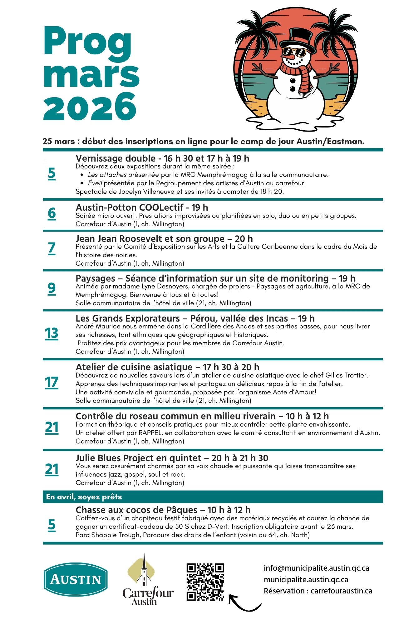 Pour toutes questions, écrivez à info@municipalite.austin.qc.ca